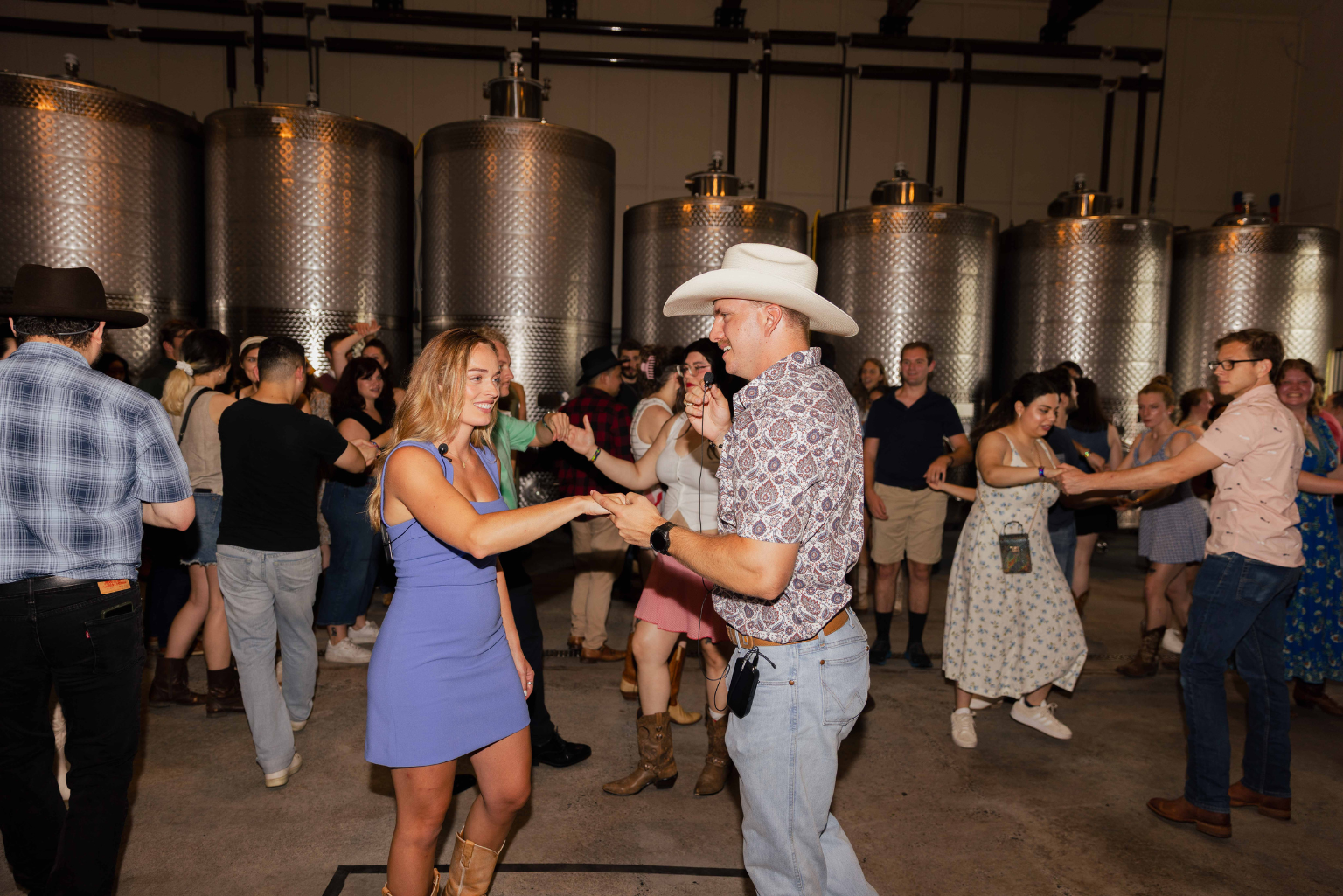 Country swing, 2-step, line dancing, live country music, and BBQ + wine—set against the entire historic vineyard grounds and campus of The Winery at Bull Run.